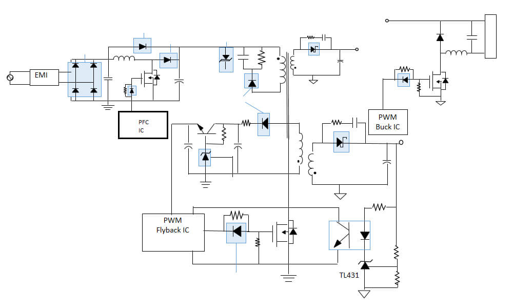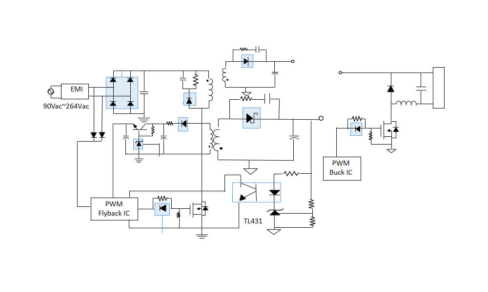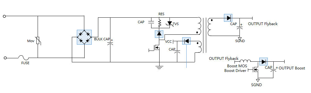 电视背光面板PFC+反激(降压)